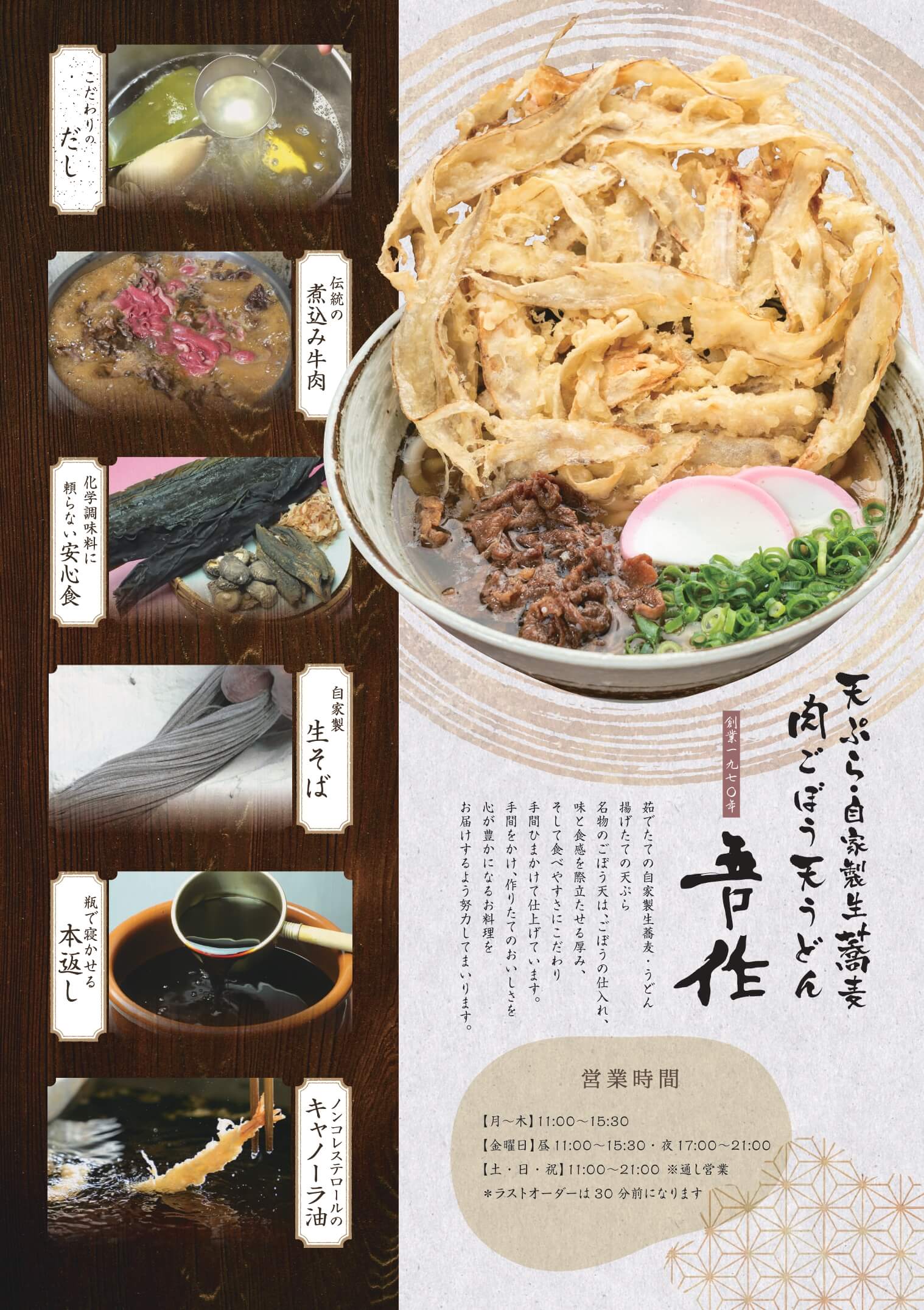 | 店名 | とろろぶっかけそばと肉ごぼう天うどん 吾作 |