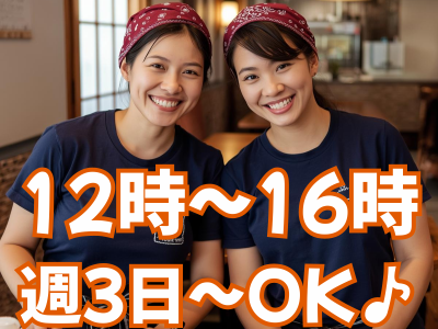 | 勤務時間 | 勤務形態:シフト制 12時~16時 ※平日のみ勤務もOK◎ ※土日祝もシフトに入ってくださる方も大歓迎♪ |
