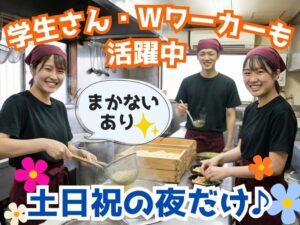 【ホールスタッフ募集】未経験・副業・学生さん・Wワーカー大歓迎♪土日祝の夜のみ勤務で学業や本業と両立できます!